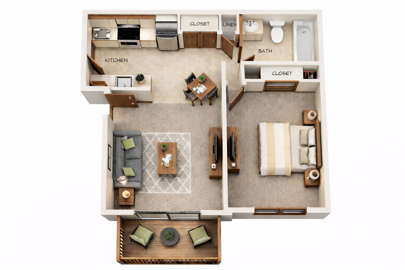 One bedroom apartments with 700 sq. ft of living space have a very large bedroom and living room. The kitchen comes fully applianced. The heat & hot water are paid by the landlord.